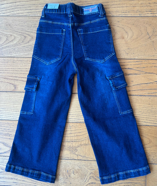 Girls Pocket Cargo Jeans-Dark Denim